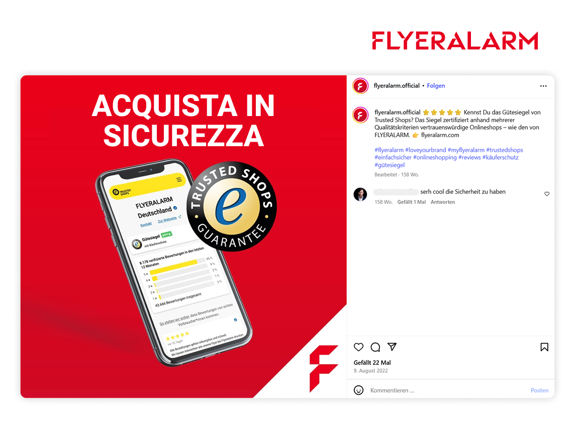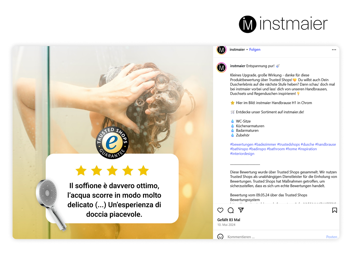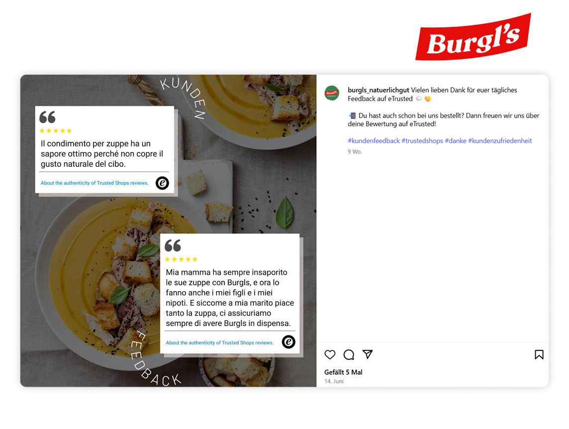 Consiglio: con il Social Media Creator di Trusted Shops puoi scegliere la tua citazione preferita e scaricare subito il post già pronto nel design del brand.