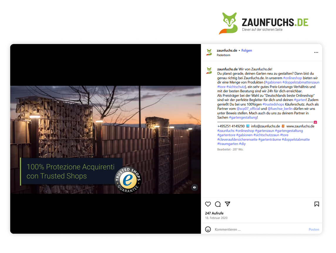 I video ti offrono l'opportunità di rendere gli elementi di fiducia ancora più coinvolgenti, ad esempio mostrando le stelle delle recensioni, il Sigillo di Qualità di Trusted Shops o brevi citazioni dei clienti.